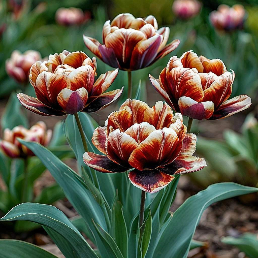 Представляем вашему вниманию тюльпан «Нимфас Дрим» — сорт, поражающий своей необычной красотой и таинственным очарованием. Этот тюльпан словно видение из мира грёз, его цветки, окрашенные в глубокие чёрно-коричневые тона с янтарными отблесками, создают ощущение загадочности и притягательности. «Нимфас Дрим» — это выбор для тех, кто ценит оригинальность, стремится создать в саду атмосферу мистики и готов восхищаться красотой, словно сошедшей со страниц легенд.